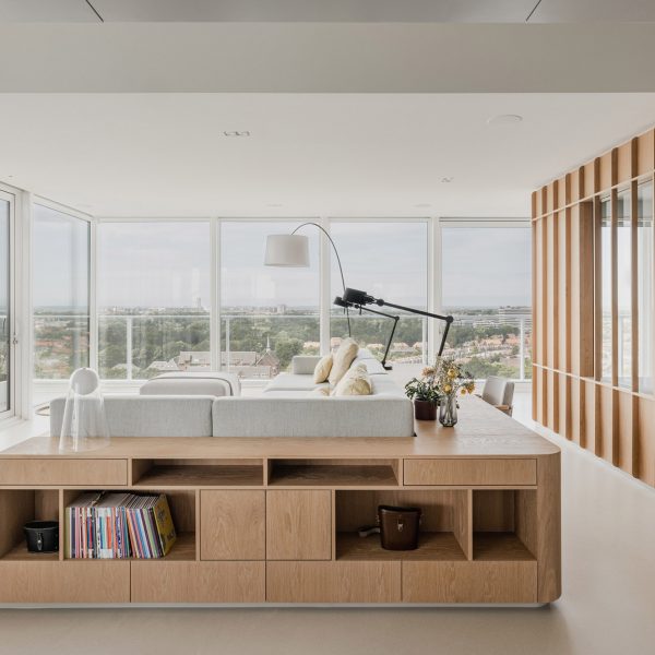 Architecture office Bureau Fraai used freestanding wooden volumes to organise the interior of this penthouse in the Netherlands, preserving panoramic views of the surroundings from within the living areas. The 300-square-metre Panorama Penthouse occupies the upper floor of a former office building in the South Holland region that was converted into a high-end residential development. Bureau Fraa...